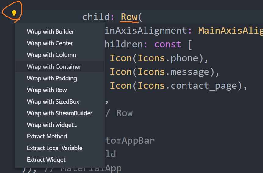 위젯명에 커서 찍으면 왼쪽에 전구가 있을겁니다.