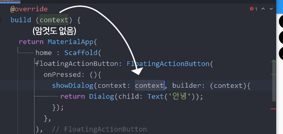 근데 여기서 커스텀위젯 안에 build(context) 라는거 보이시죠?