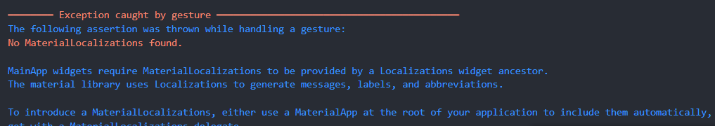 MaterialLocalizations 라는 변수가 조상중에 존재해야한다고 에러를 내주는데