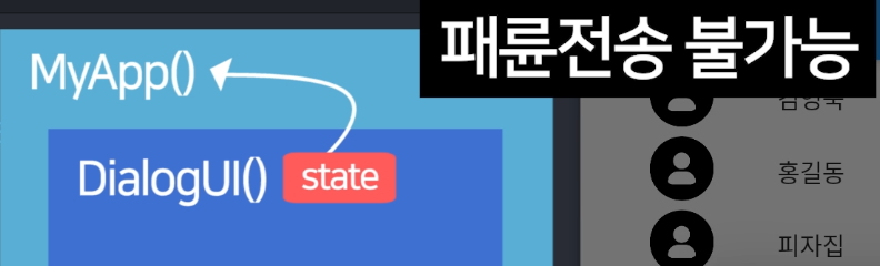 이게 끝인데 MyApp()에 있던 a라는 state를 DialogUI() 안으로 전송해봅시다.